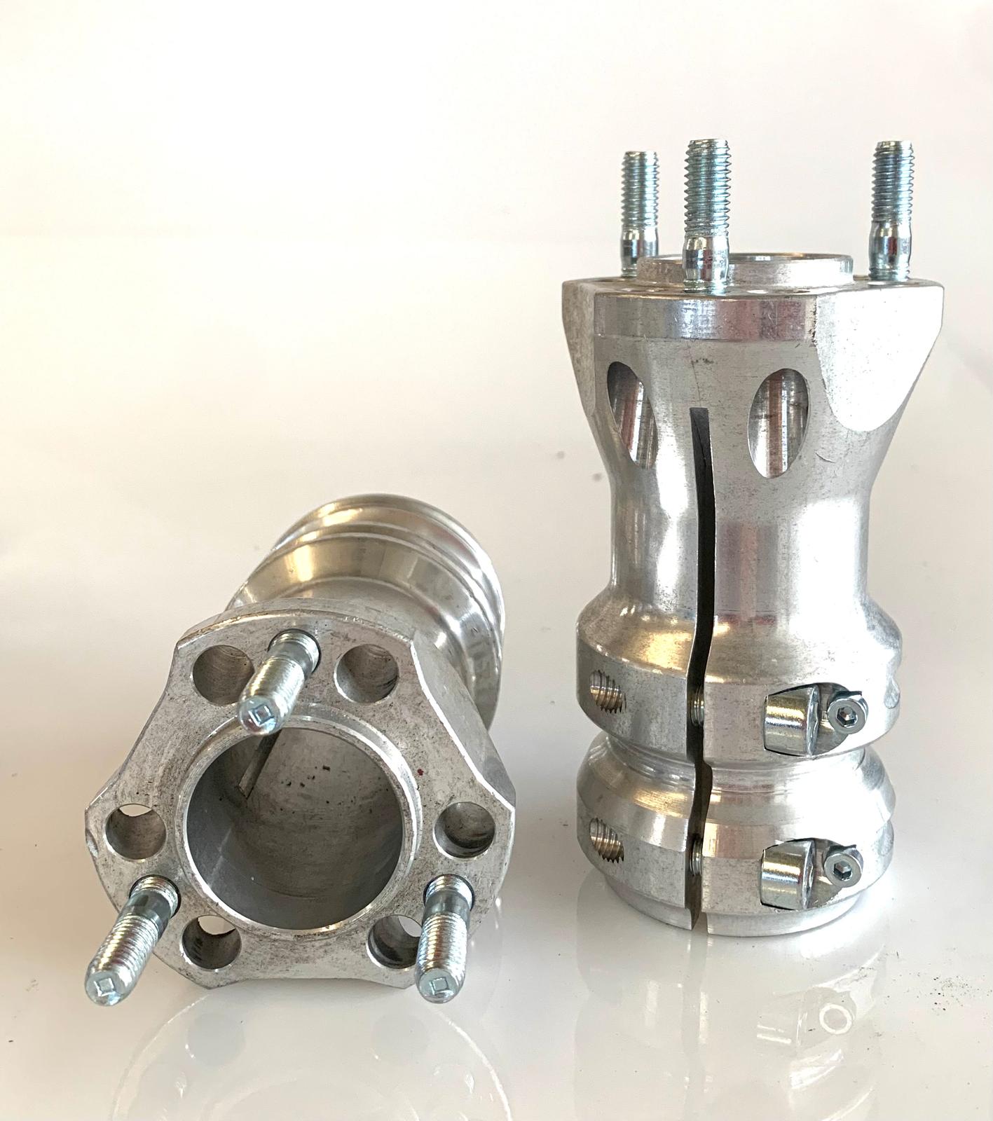 Rear kart hub with 40 mm inner diameter and 125 mm length. CNC-machined from high-strength aluminum for maximum precision, rigidity, and secure axle clamping. Ideal for setups requiring greater rear-end stability and support. Compatible with most racing chassis using Ø40 mm axles.
