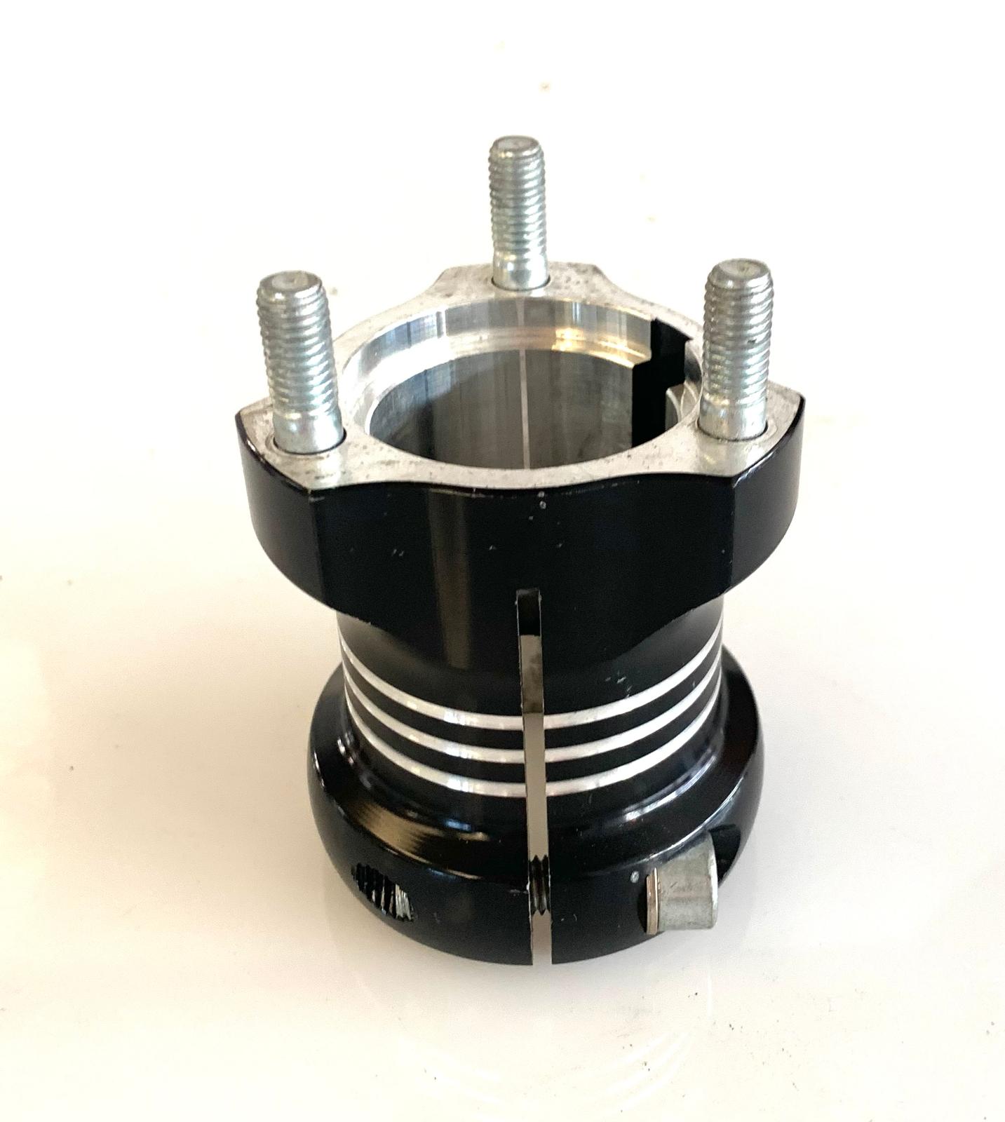 Rear kart hub with 40 mm inner diameter and 80 mm length, made of black anodized aluminum. CNC-machined for high mounting precision and solid structural rigidity. Ideal for racing setups requiring a balance between rear-end stability and responsiveness. Compatible with most competition chassis using Ø40 mm axles.